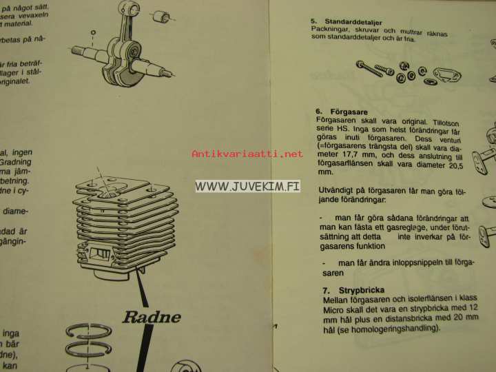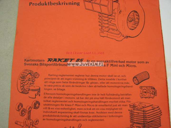 Raket 85 -mikroautomoottorin käyttöohjekirja ruotsiksi