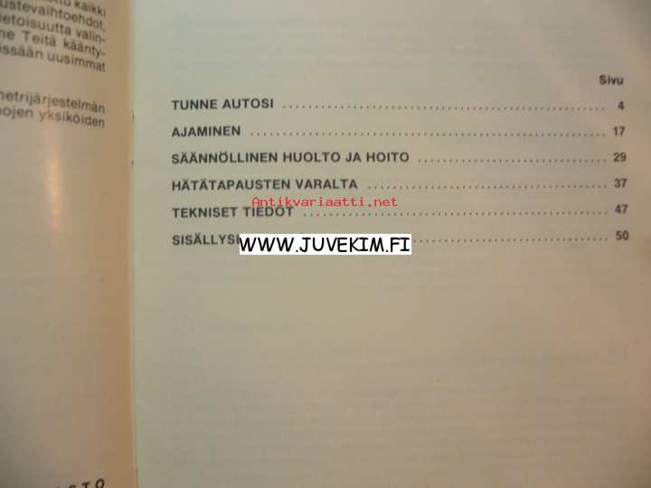 | Saatavilla | 1 kpl | | Julkaisuvuosi | 1978 | | Sivuja | 52 | | Kunto | K4 | | Sidonta/painoasu | Nidottu (pehmeäk.) | | Kielet | Suomi |