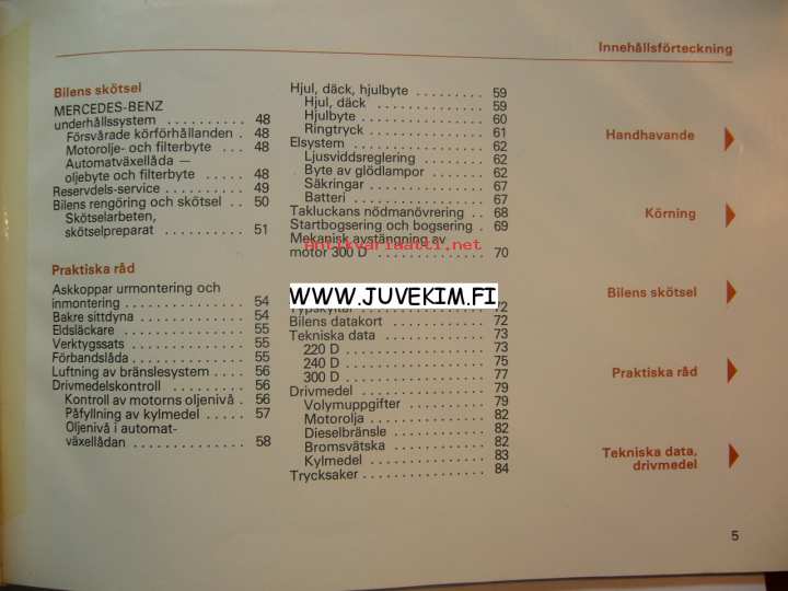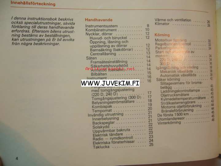 Mercedes-Benz 220 D/240 D/300 D -instruktionsbok