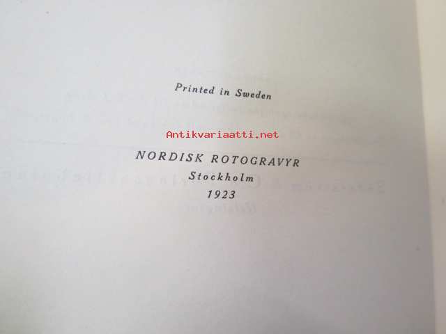 | Saatavilla | 1 kpl | | Julkaisuvuosi | 1923 | | Sivuja | 368 + 750 | | Painos | 2. | | Kunto | K2 | | Sidonta/painoasu | Nahkaselkä | | Kielet | Ruotsi |