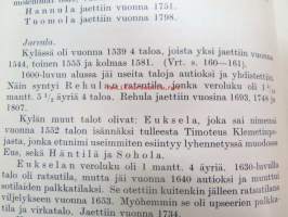 | Saatavilla | 1 kpl | | Julkaisuvuosi | 1935 | | Sivuja | 465 + 381 | | Painos | 1. | | Kunto | K2 | | Sidonta/painoasu | Sidottu (kovak.) | | Kielet | Suomi |