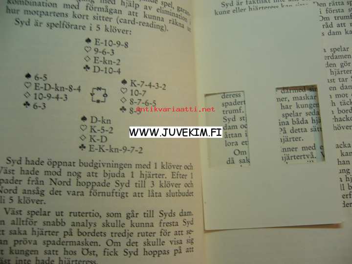 | Saatavilla | 1 kpl | | Julkaisuvuosi | 19? | | Sivuja | 104 | | Kunto | K3 | | Sidonta/painoasu | Taskukirja | | Kielet | Ruotsi |