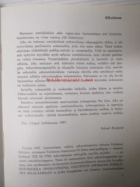 | Saatavilla | 1 kpl | | Julkaisuvuosi | 1960 | | Sivuja | 57 | | Painos | 1 | | Kunto | K2 | | Sidos irti kannesta | | Sidonta/painoasu | Nidottu (pehmeäk.) | | Kielet | Suomi |