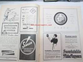 Kotiliesi 1927 nr 17, syyskuu I, 1.9.1927, sis. mm. seur. artikkelit / kuvat / mainokset; Kansikuvitus Aarno Karimo (Mökki Raja-Karjalassa), Fazer Kultakaramelli,