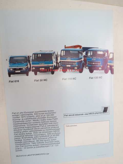 Fiat 90 NC, 50 NC, 238 Mira, 850 T - voimaa kuljetuksiin -myyntiesite