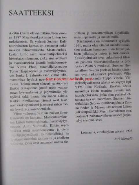 | Saatavilla | 1 kpl | | Julkaisuvuosi | 1996 | | Kunto | K3 | | Sidonta/painoasu | Sidottu (kansipaperit) | | ISBN | 951-710-041-8 | | Kielet | Suomi |