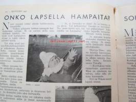 Kotiliesi 1932 nr 8, huhtikuu II, 15.4.1932, sis. mm. seur. artikkelit / kuvat / mainokset; Kansikuvitus Martta Wendelin, Orvo lastensaippua, Aviopuolison valinta