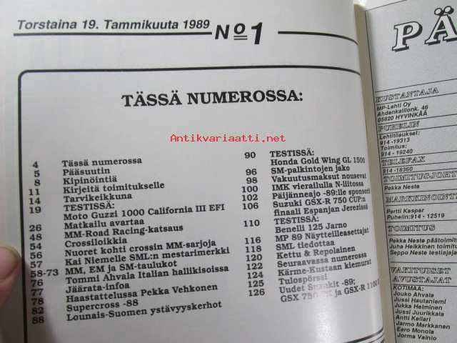 MP 1 lehti 1989 nr 1 -Moottoripyörälehti, katso sisältö kuvista tarkemmin.