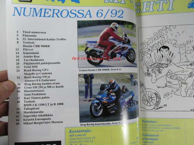 MP 1 lehti 1992 nr 6 -Moottoripyörälehti, katso sisältö kuvista tarkemmin.