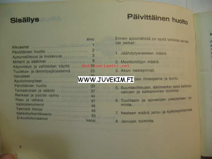 | Saatavilla | 2 kpl | | Julkaisuvuosi | 1977 | | Sivuja | 51 | | Kunto | K3 | | Sidonta/painoasu | Nidottu (pehmeäk.) | | Kielet | Suomi |