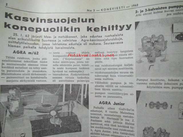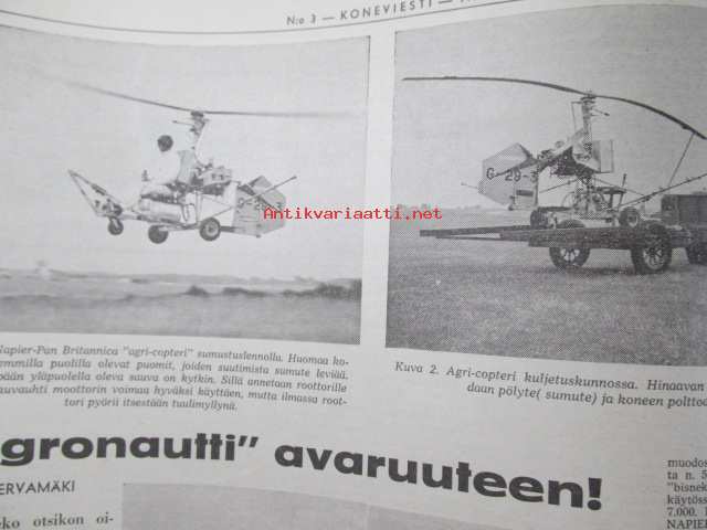 Koneviesti 1962 nr 3 -mm. Viljakuivurit 1962 tekniset tiedot, "Agronautti" avaruuteen Beagle-autogiro - Piper Super Cup - Agri-copteri - Kolibri-helikopteri -