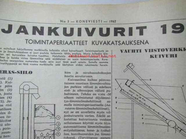 Koneviesti 1962 nr 3 -mm. Viljakuivurit 1962 tekniset tiedot, "Agronautti" avaruuteen Beagle-autogiro - Piper Super Cup - Agri-copteri - Kolibri-helikopteri - Brantly B-2 helikopteri - Napier-Pan Britannia "agrikopteri", Parson malli 1300, Raumalaista suurteollisuutta, Putkistolypsykone, Vakola koetusselostukset Siilo-viljakuivuri - Elve kotitalousvaaka, Simca 1000, Renault Gordini Special, Kuorma-autoa valitsemassa Mercedes kuorma-autot, Henkilöautot puntarissa Citroen Ami - Ford Anglia - Fiat 600 D, Renault Dauphine - Simca 100 - Volkswagen, katso sisältö kuvista tarkemmin.28 x 43 cm.