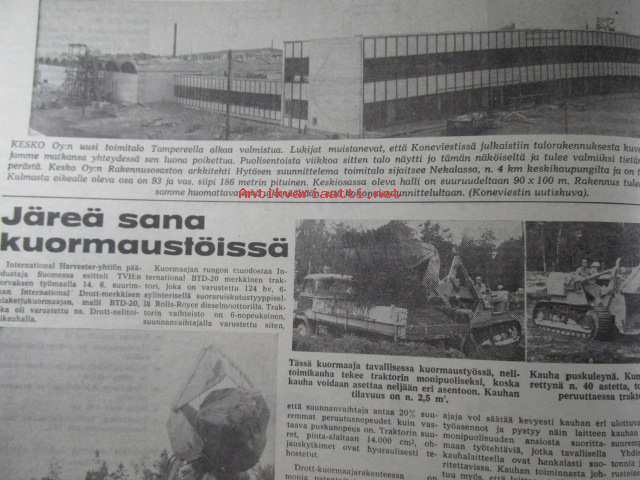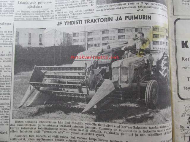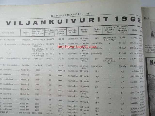 Koneviesti 1962 nr 14 -mm. Elmia 1962. Itsesitojia Fella - JF kevytsitoja - McCormick D-7 - HErkules - JF -etusitoja TF5K, Leikkuupuimurit kuvina, Viljankuivurit