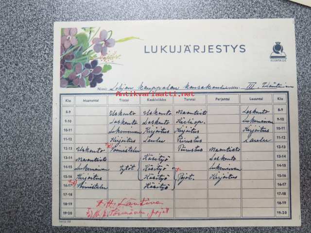 Kuvataide -lukujärjestys, Lohjan Kauppalan kansakoulu