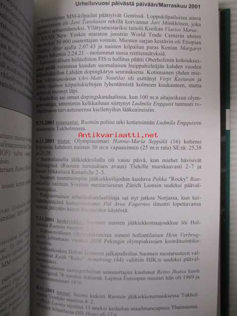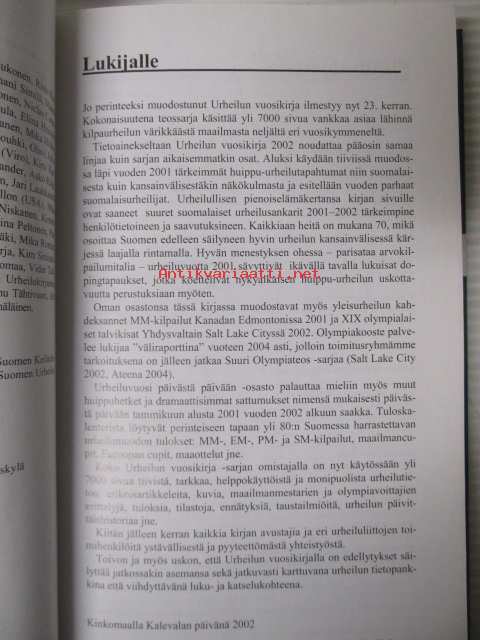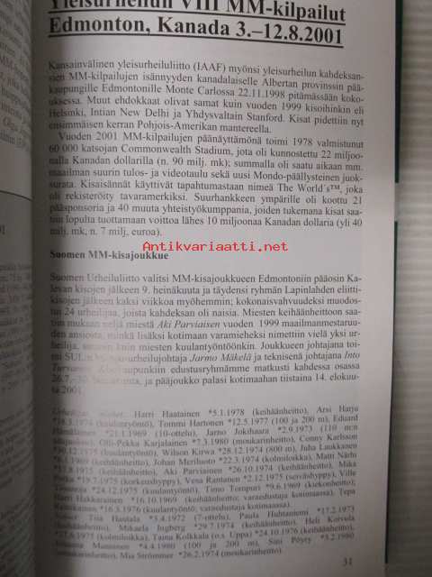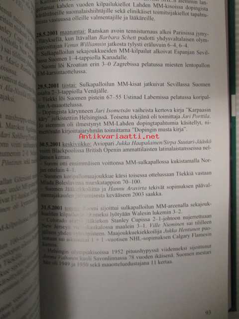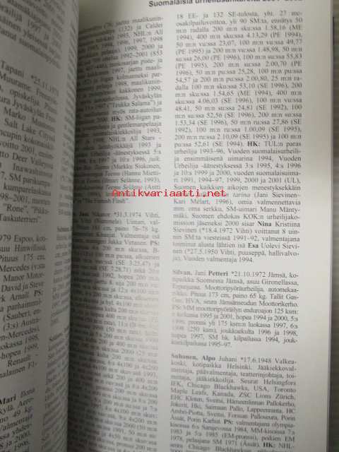 | Saatavilla | 1 kpl | | Julkaisuvuosi | 2002 | | Sivuja | 341 | | Kunto | K3 | | Sidonta/painoasu | Kuvitettu kovakantinen | | ISBN | 952-5106-16-0 | | Kielet | Suomi |