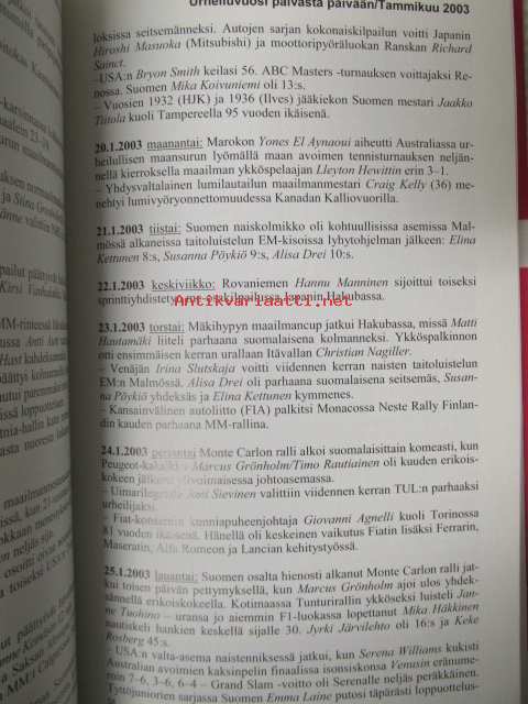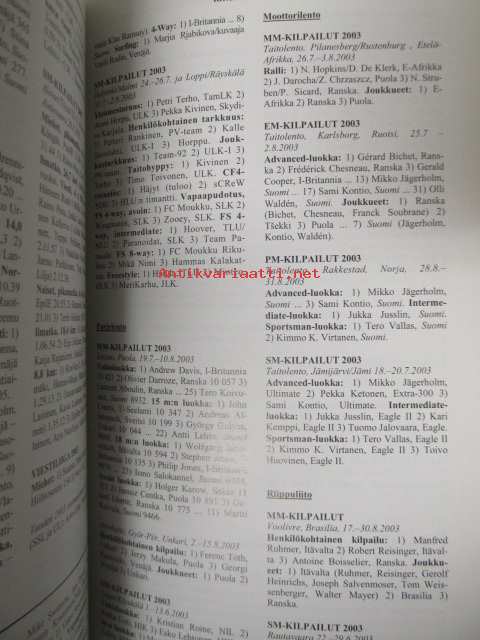 | Saatavilla | 1 kpl | | Julkaisuvuosi | 2004 | | Sivuja | 320 | | Kunto | K3 | | Sidonta/painoasu | Kuvitettu kovakantinen | | ISBN | 952-5106-16-0 | | Kielet | Suomi |