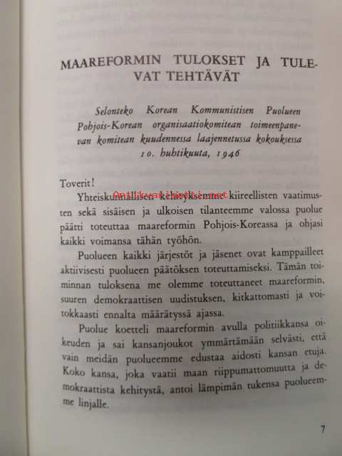 Kim Il Sung, Sosialistisen maaseudun kysymyksistä - Korean työväenpuolueen perustamisen 30-vuotispäivän kunniaksi.