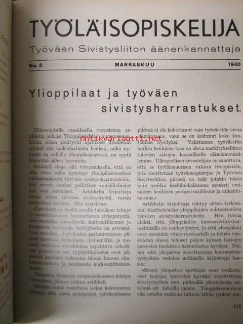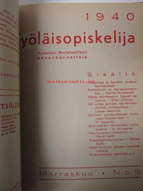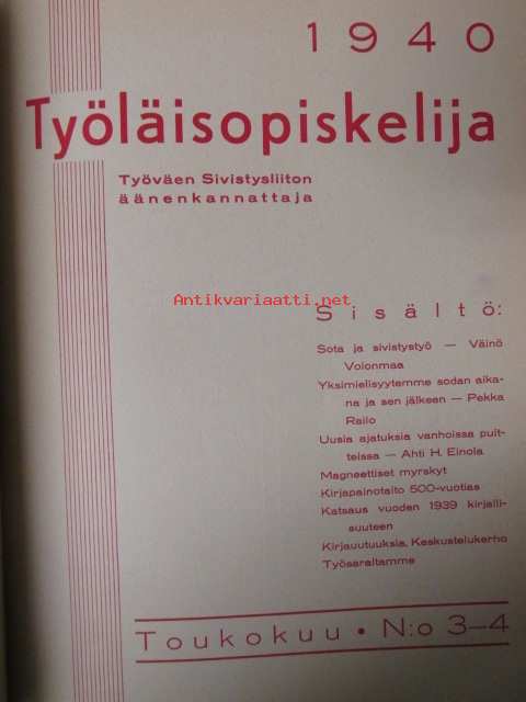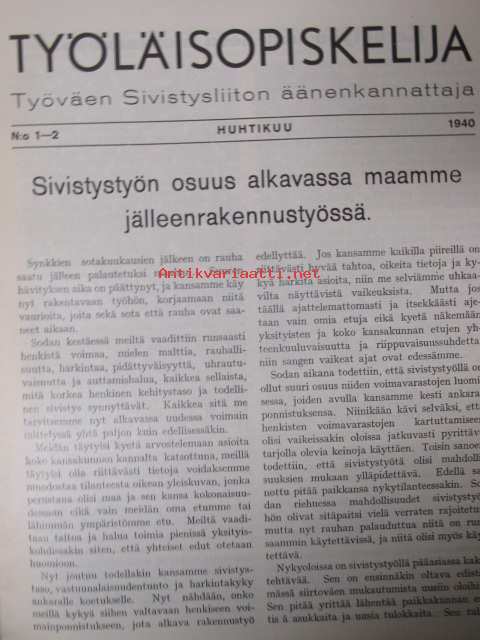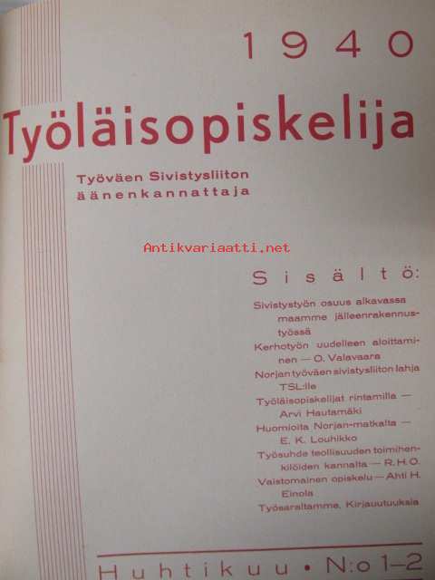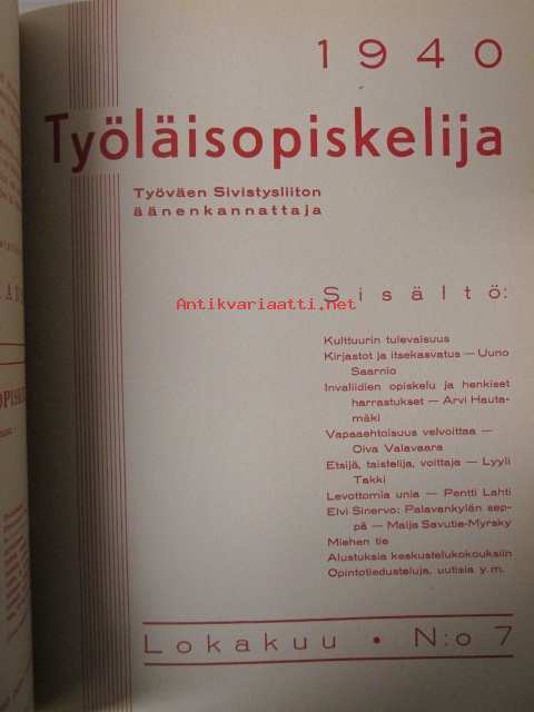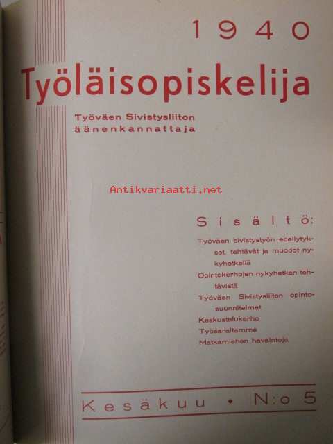 Työläisopiekelija 1940 - sidottu vuosikerta