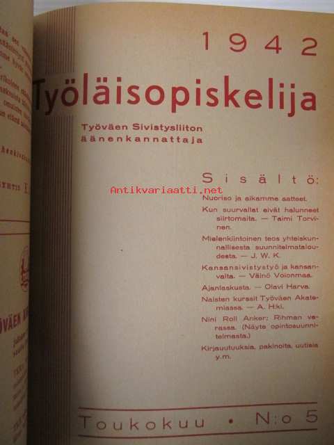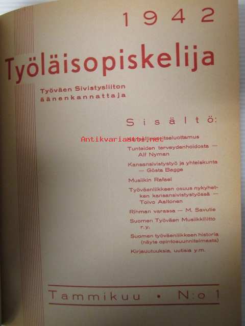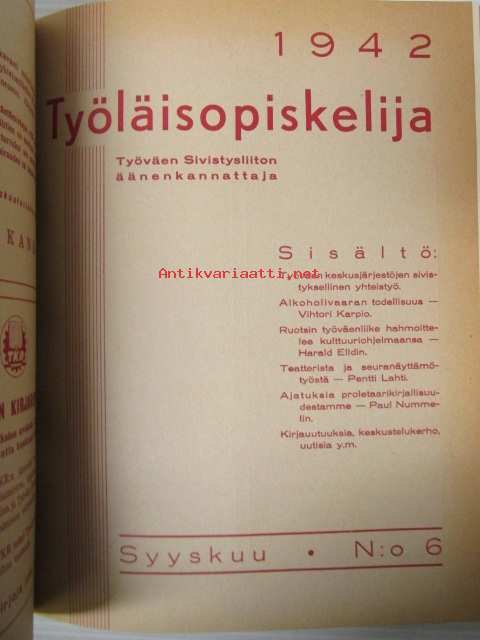 Työläisopiekelija 1942 - sidottu vuosikerta