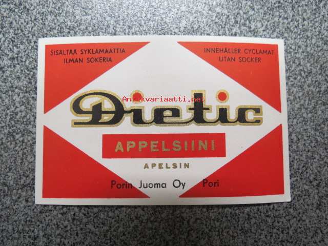 Dietic Applsiini / Apelsin, Porin Juoma Oy, Pori -juomaetiketti