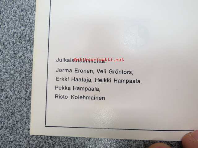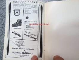 | Saatavilla | 1 kpl | | Julkaisuvuosi | 1967 | | Sivuja | 28 | | Painos | 1. | | Kunto | K3 | | Sidonta/painoasu | Nidottu (pehmeäk.) | | Kielet | Suomi |