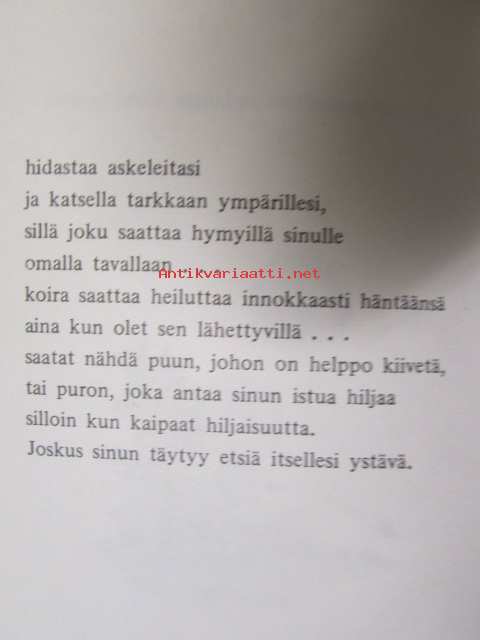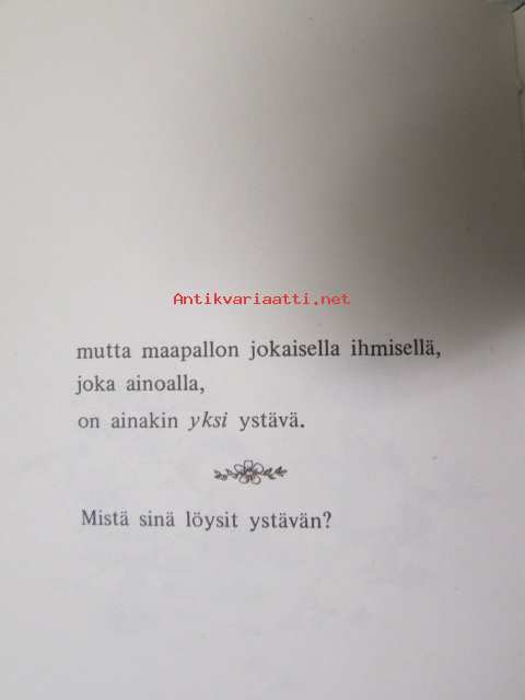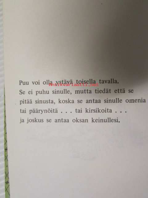 | Saatavilla | 1 kpl | | Julkaisuvuosi | 1976 | | Sivuja | 32 | | Kunto | K3 | | Sidonta/painoasu | Kuvitettu kovakantinen | | ISBN | 951-811-008-5 | | Kielet | Suomi |