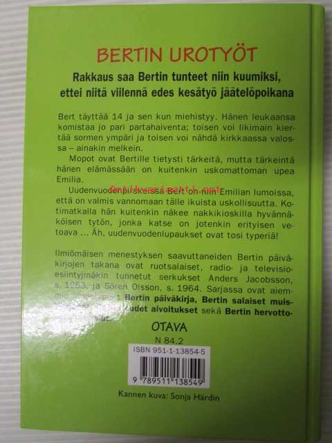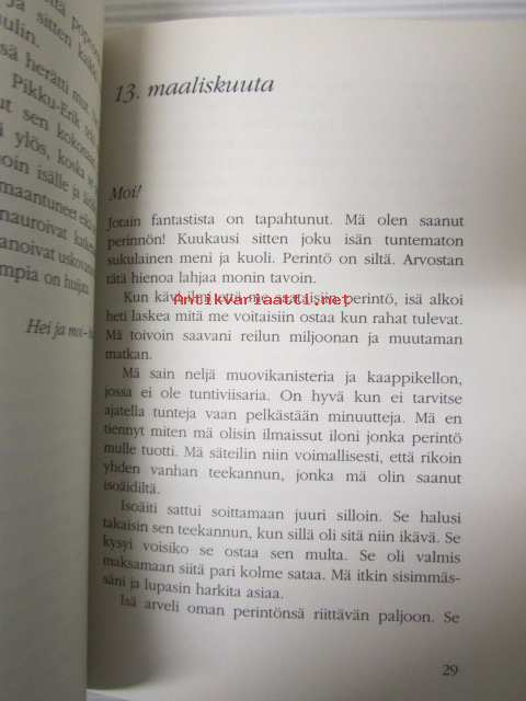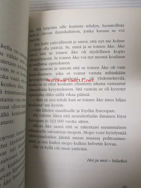 | Saatavilla | 1 kpl | | Julkaisuvuosi | 1999 | | Sivuja | 155 | | Painos | 5. | | Kunto | K3 | | Sidonta/painoasu | Kuvitettu kovakantinen | | ISBN | 951-1-13854-5 | | Kielet | Suomi |
