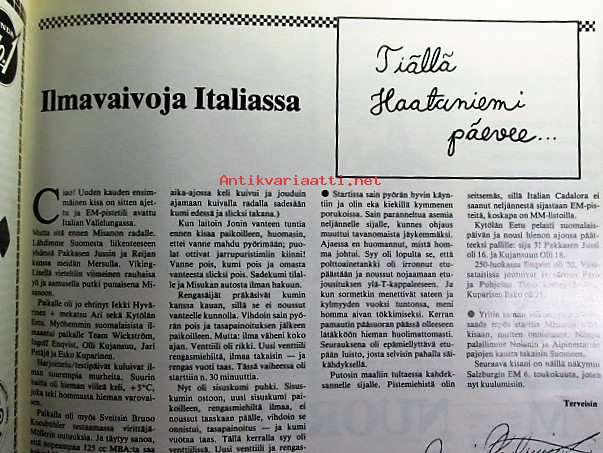 | Saatavilla | 1 kpl | | Julkaisuvuosi | 1984 | | Sivuja | 85 | | Kunto | K3 | | Sidonta/painoasu | Lehti | | Kielet | Suomi |