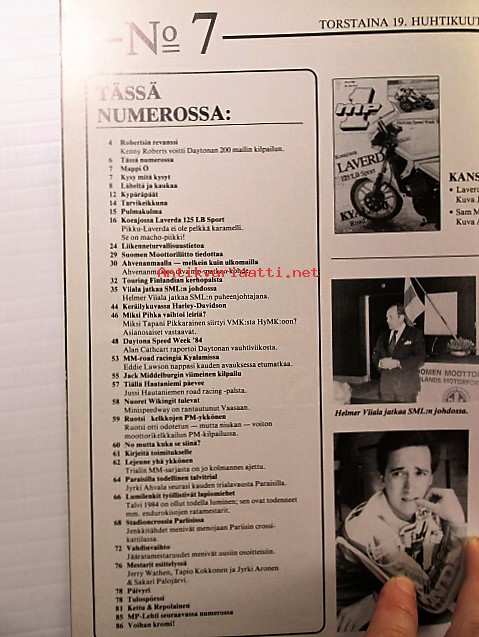 MP 1 lehti 1984 nr 7 -Moottoripyörälehti, katso sisältö kuvista tarkemmin. Koeajossa laverda 125 LB Sport. keskiaukeamakuva: Harley-Davidson KR 750