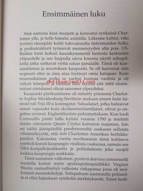 | Saatavilla | 1 kpl | | Julkaisuvuosi | 1998 | | Sivuja | 400 | | Painos | Nidotun laitoksen 1. | | Kunto | K4 | | Sidonta/painoasu | Nidottu (pehmeäk.) | | ISBN | 951-1-14945-8 | | Kielet | Suomi |