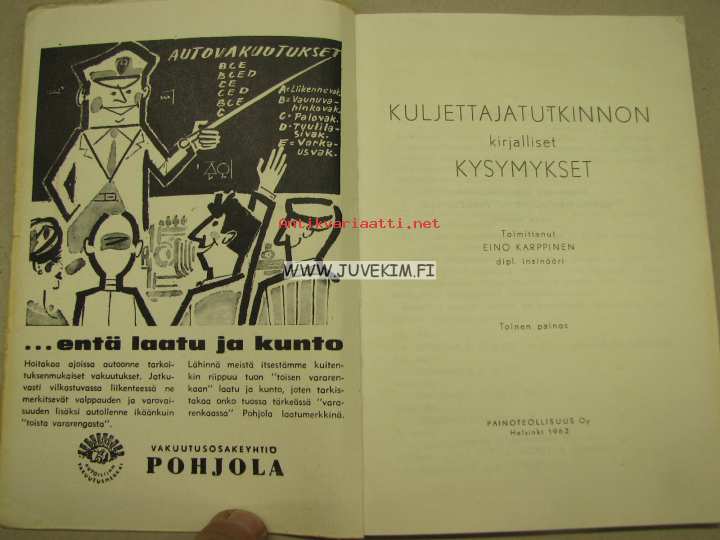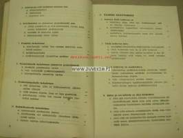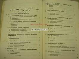 | Saatavilla | 1 kpl | | Julkaisuvuosi | 1962 | | Sivuja | 112 | | Painos | 2. | | Kunto | K2 | | Kulunut | | Sidonta/painoasu | Nidottu (pehmeäk.) | | Kielet | Suomi |
