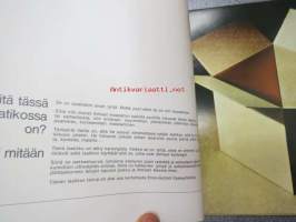 | Saatavilla | 3 kpl | | Julkaisuvuosi | 1965 | | Painos | 1. | | Kunto | K3 | | Sidonta/painoasu | Nidottu (pehmeäk.) | | Kielet | Suomi |