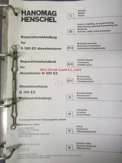 Hanomag Henschel Dieselmoottorin D 301 E 2 Korjaamokäsikirja / Reparationshandbok / Reparationshåndbog