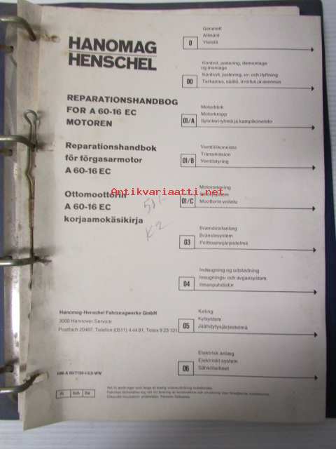 Hanomag Henschel Ottomoottorin A 60-16 EC Korjaamokäsikirja / Reparationshandbok / Reparationshandbog