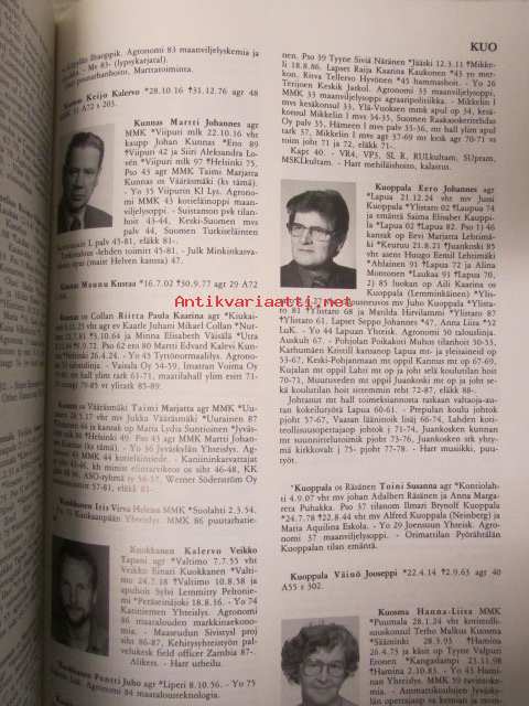 | Saatavilla | 1 kpl | | Julkaisuvuosi | 1990 | | Sivuja | 594 | | Kunto | K3 | | Sidonta/painoasu | Kuvitettu kovakantinen | | ISBN | 952-90-2588-2 | | Kielet | Suomi |