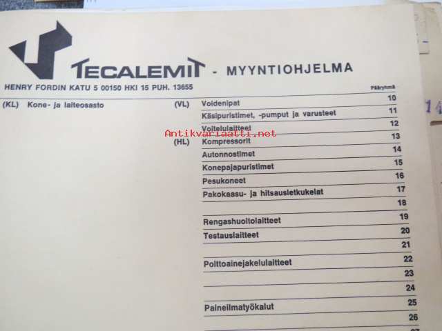 Oy Tecalemit Ab, 197?27 x 30 cm. 4 cm nippu esitteitä.