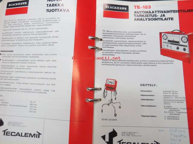 Tecalemit -autokorjaamoalan tarvikkeiden ja tuotteiden esitteitä ja ohjeita kansiollinen, 1970-luvulta