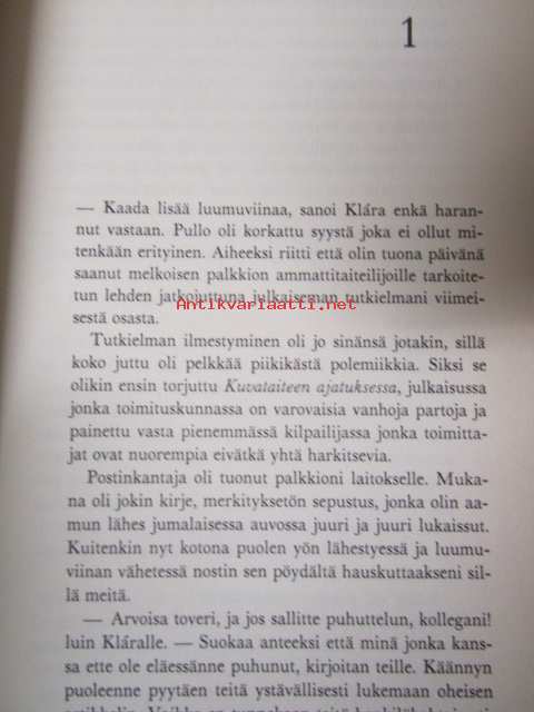 | Saatavilla | 1 kpl | | Julkaisuvuosi | 1988 | | Sivuja | 280 | | Painos | 1. | | Kunto | K3 | | Sidonta/painoasu | Sidottu (kansipaperit) | | ISBN | 951-0-15148-3 | | Kielet | Suomi |