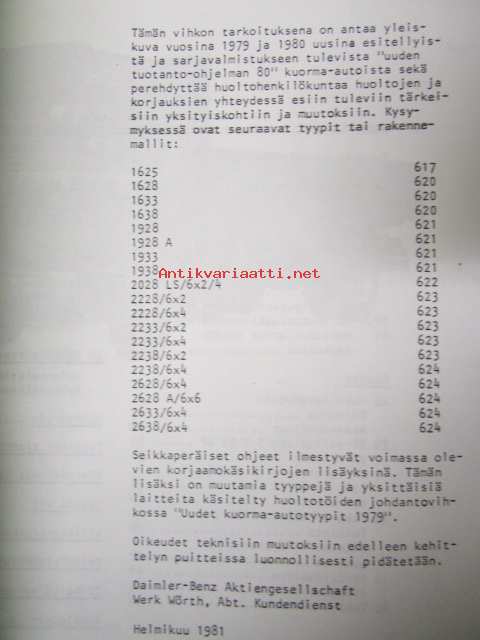 Mercedes-Benz Uudet kuorma-autotyypit 1980-81 huoltotöiden johdantovihko, katso kuvista tarkemmat tyypit ja mallitiedot