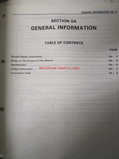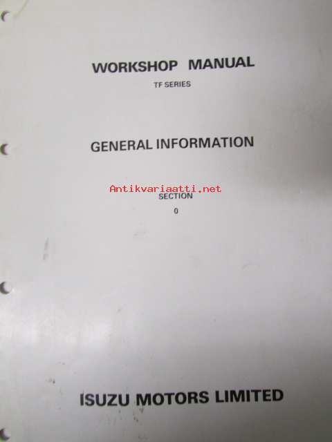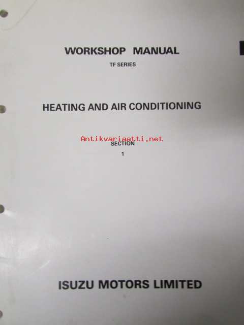 Isuzu Motors Limited, 1991Isuzu Workshop manual TF Series 1989 - 5 osainen -mm. Axle, Manual transmissions (MSG-T Type), Specials tools, Clutch, Heating and air conditioning, General information.