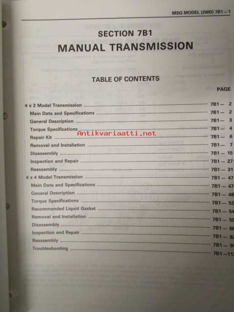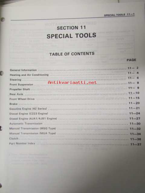 Isuzu Workshop manual TF Series 1989 - 5 osainen -mm. Axle, Manual transmissions (MSG-T Type), Specials tools, Clutch, Heating and air conditioning, General