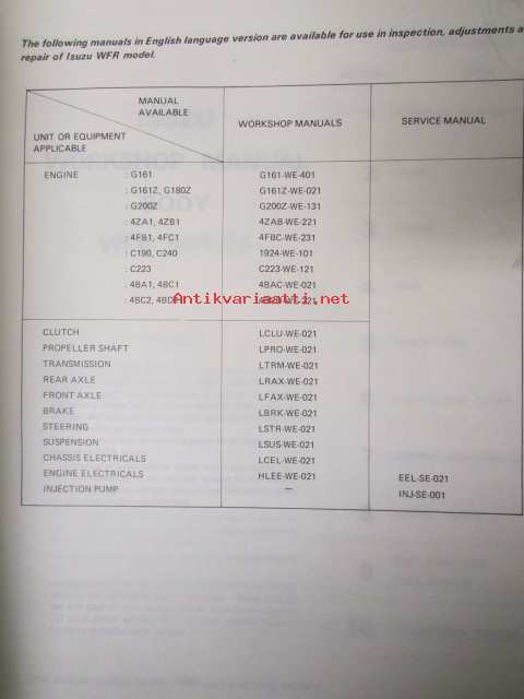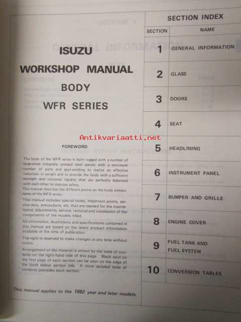 Isuzu Workshop Manual Body - WFR Series, katso kuvista sisältö tarkemmin