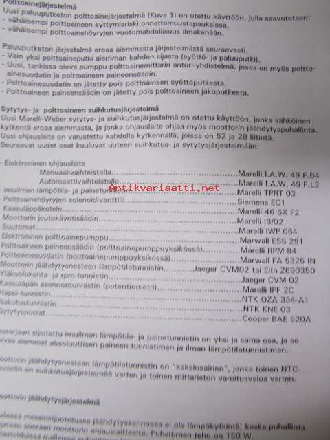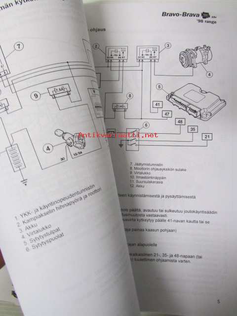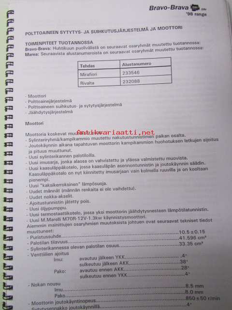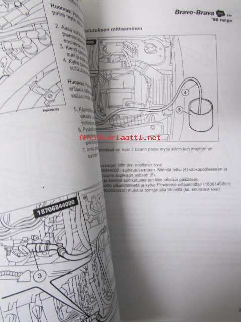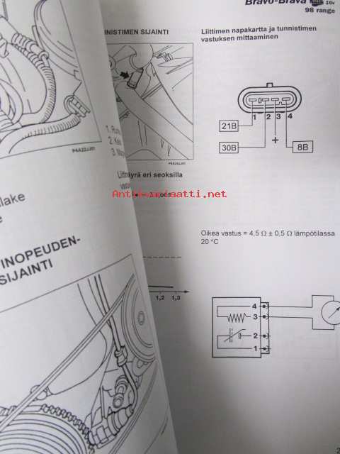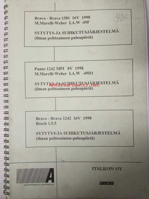 Fiat auto, 1998Fiat Bravo - Brava 1581 16V 1998, M.Marelli-Weber I.A.W -49F Sytytys- ja suihkutusjärjestelmä (ilman polttoaineen paluupiiriä) /Punto 1242 MPI 8V 1998, M.Marelli-Weber I.A.W -49D1 Sytytys- ja suihkutusjärjestelmä (ilman polttoaineen paluupiiriä) / Bravo - Brava 1242 16V 1998, Bosch 1.5.5, Sytytys- ja suihkutusjärjestelmä (ilman polttoaineen paluupiiriä)