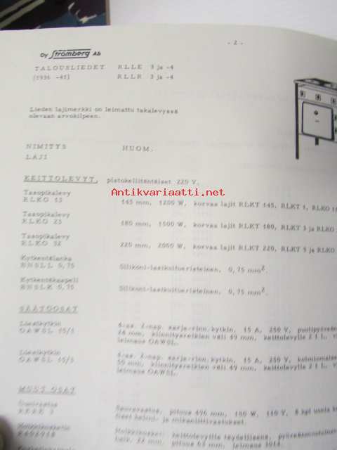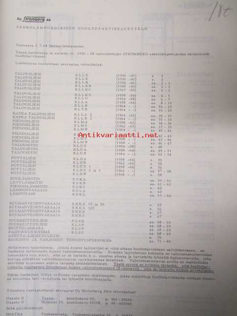 Strömberg Sähkölämpökojeiden huoltotarvikeluettelo