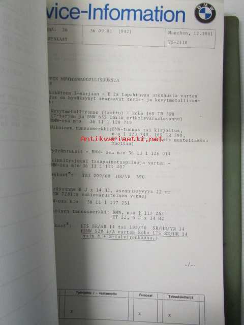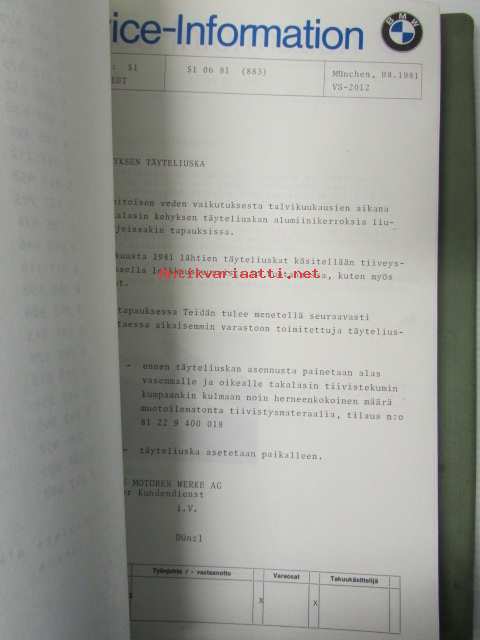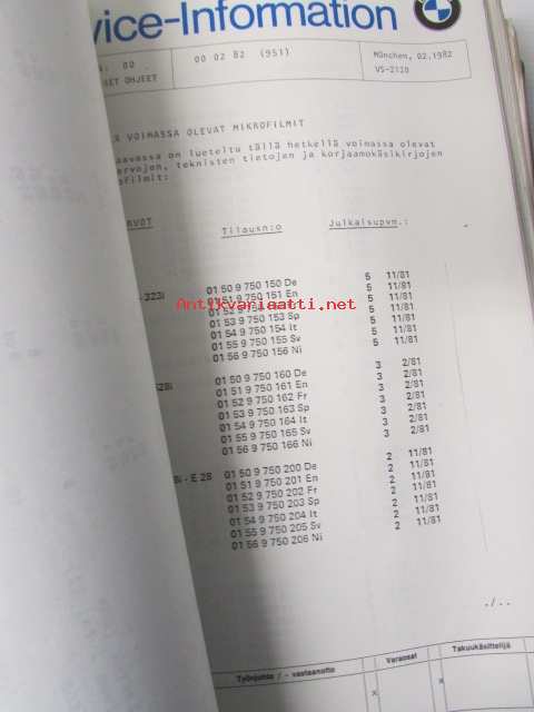 BMW 300, 500 series Werkstatthandbuch - 300 ja 500 sarjan huoltokirjeitä ja sähköpiirustuksia 1979-1982