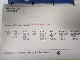 BMW Tekniska data personbilar 1500, 300, 500, 600, 700 sarjan - korjaus- ja huoltokäsikirja, katso tarkemmat mallimerkinnät kuvista