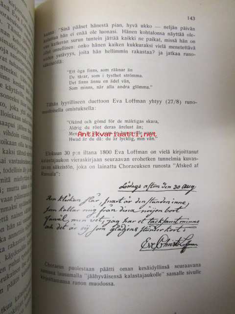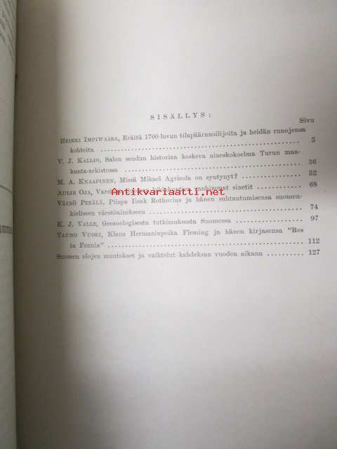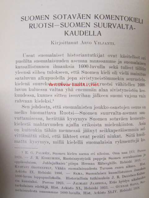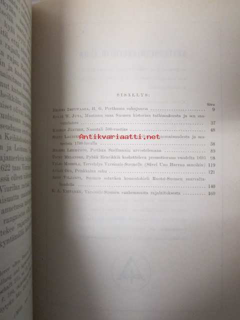 | Saatavilla | 1 kpl | | Julkaisuvuosi | 1940 | | Painos | 1. | | Kunto | K2 | | Sidonta/painoasu | Sidottu (kovak.) | | Kielet | Suomi |