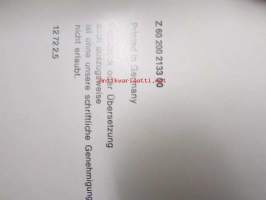 | Saatavilla | 1 kpl | | Julkaisuvuosi | 1977 | | Kunto | K2 | | Sidonta/painoasu | Kansio | | Kielet | Saksa |