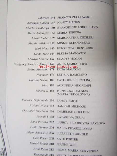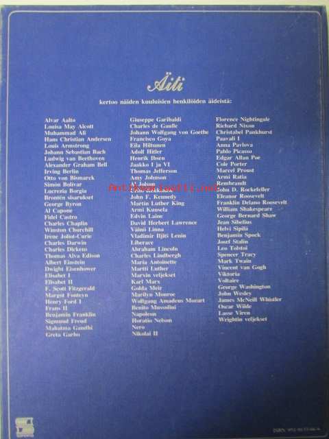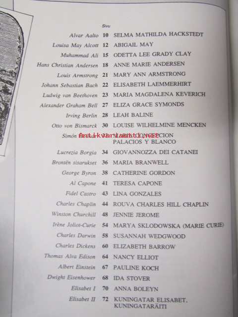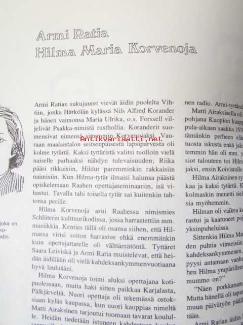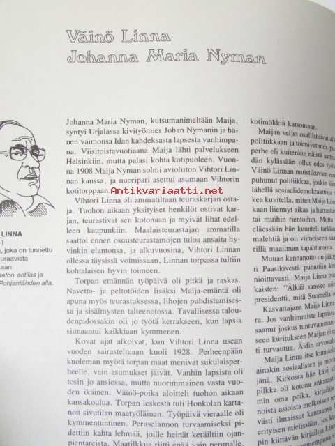 | Saatavilla | 1 kpl | | Julkaisuvuosi | 1977 | | Sivuja | 267 | | Painos | 1. | | Kunto | K2 | | Sidonta/painoasu | Kuvitettu kovakantinen | | ISBN | 951-9133-66-6 |