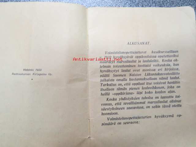 | Saatavilla | 1 kpl | | Julkaisuvuosi | 1933 | | Sivuja | 40 | | Painos | 1. | | Kunto | K2 | | Kulunut | | Sidonta/painoasu | Nidottu (pehmeäk.) | | Kielet | Suomi |